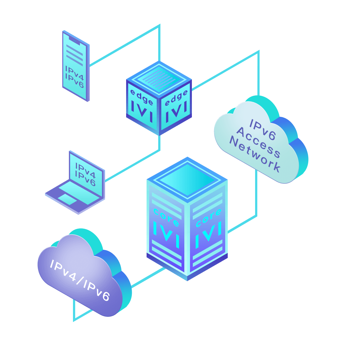 對正在進行IPv6整體升級規(guī)劃的運營商,應用IPv6升級方案2.5,通過IVI無狀態(tài)翻譯技術(shù)和純IPv6接入網(wǎng)絡(luò),為雙棧客戶端和雙棧服務(wù)器提供連通服務(wù)。